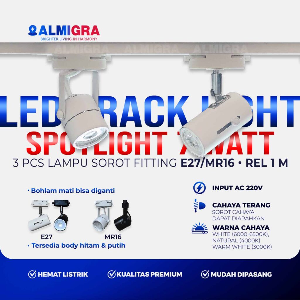 Lampu Sorot Rel 1M Set isi 3 Spotlight Track Light Rell LED 7W E27 MR16 Bohlam Bisa DigantiRp152.999KategoriTrack LightOrder