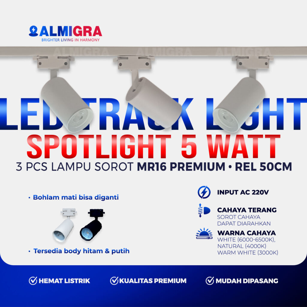 Set 3 Lampu Sorot Track Light Rel 50cm Fitting MR16 Premium 5W – LED Spotlight Rumah, Toko, Cafe, Restoran, KantorRp247.999KategoriTrack LightOrder
