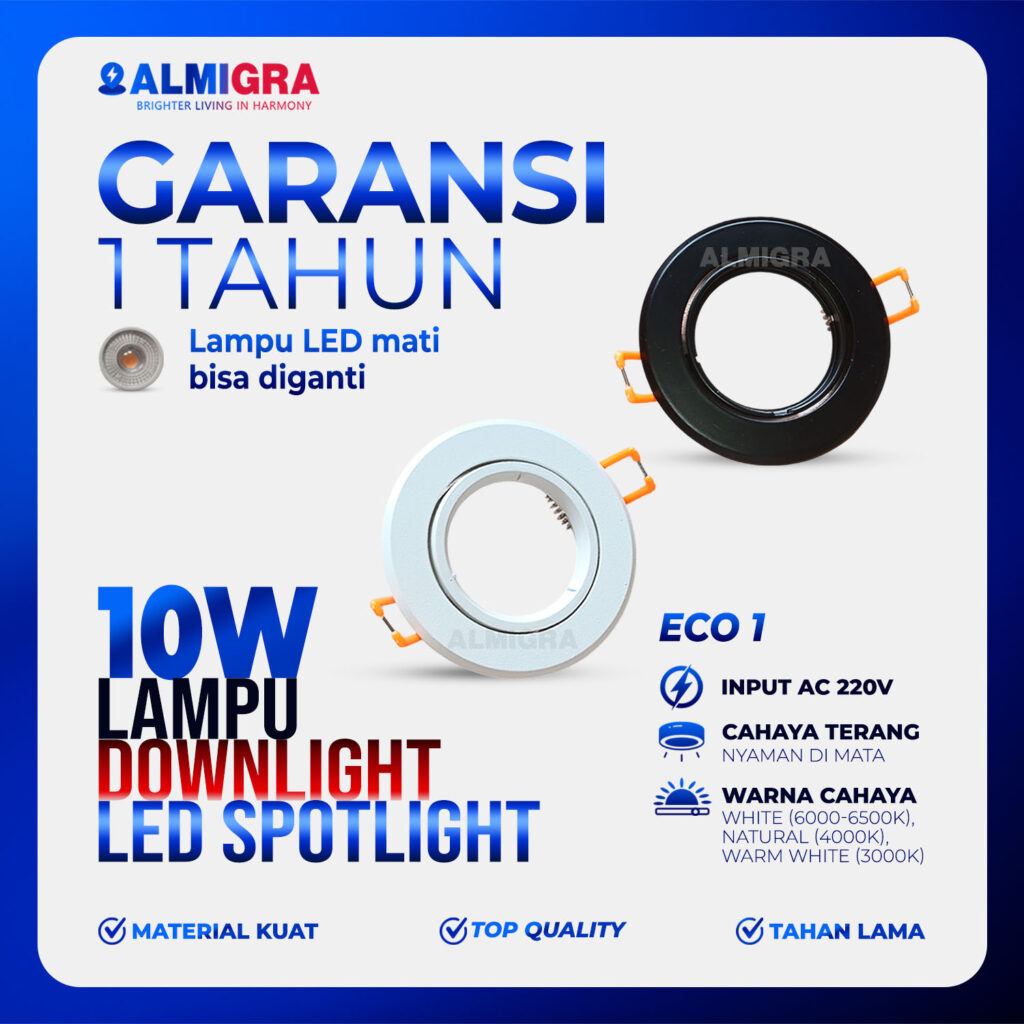 Spotlight Downlight LED 10W ECO 1 Lampu Sorot Plafon LED Mudah Diganti Garansi 1 TahunRp69.999KategoriDownlight TempelSpotlight TempelOrder