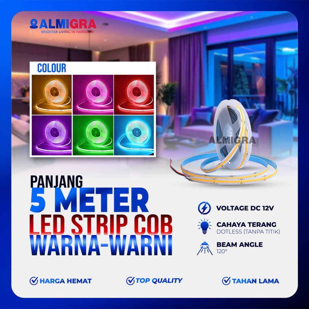 LED Strip COB 12V 5 Meter Plus Lem Double Tape Merah Biru Hijau Ice Blue GoldenRp64.999KategoriLED Strip / Neon Flex / COB Strip Lampu HiasOrder