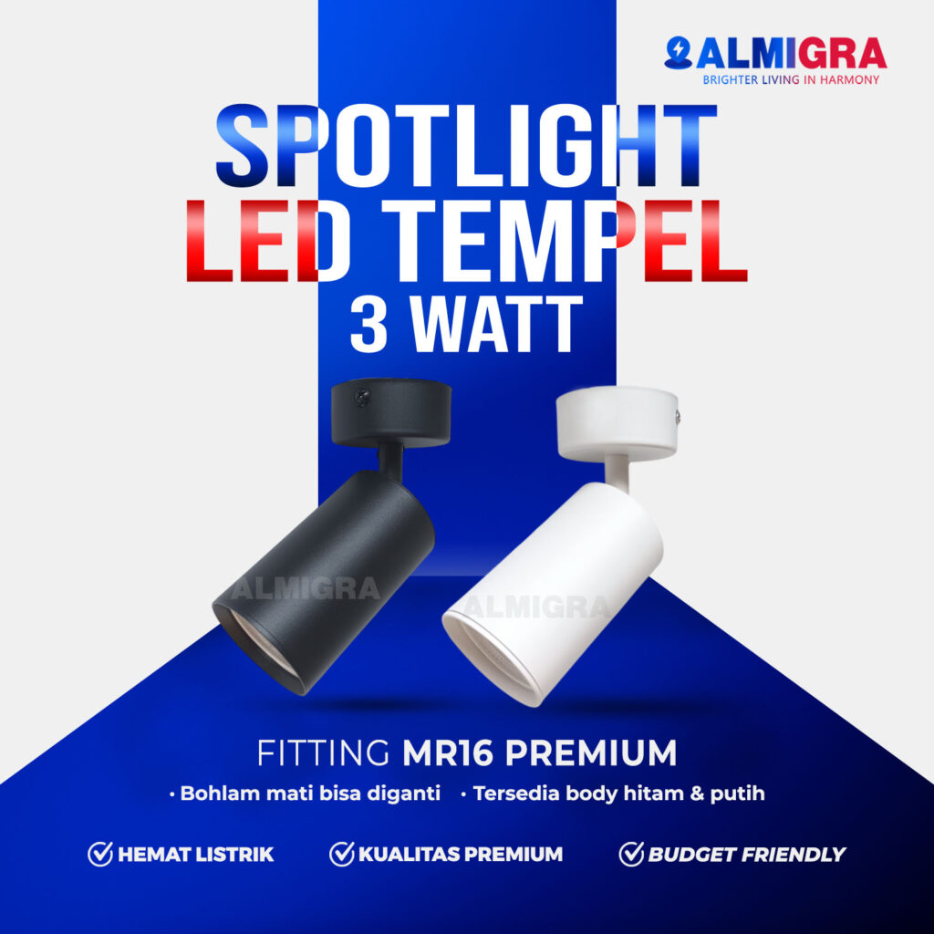 Lampu Sorot Tempel Plafon LED MR16 Premium 3W – Spotlight Bisa Ganti Bohlam Rumah Toko CafeRp76.999KategoriSpotlight TempelOrder