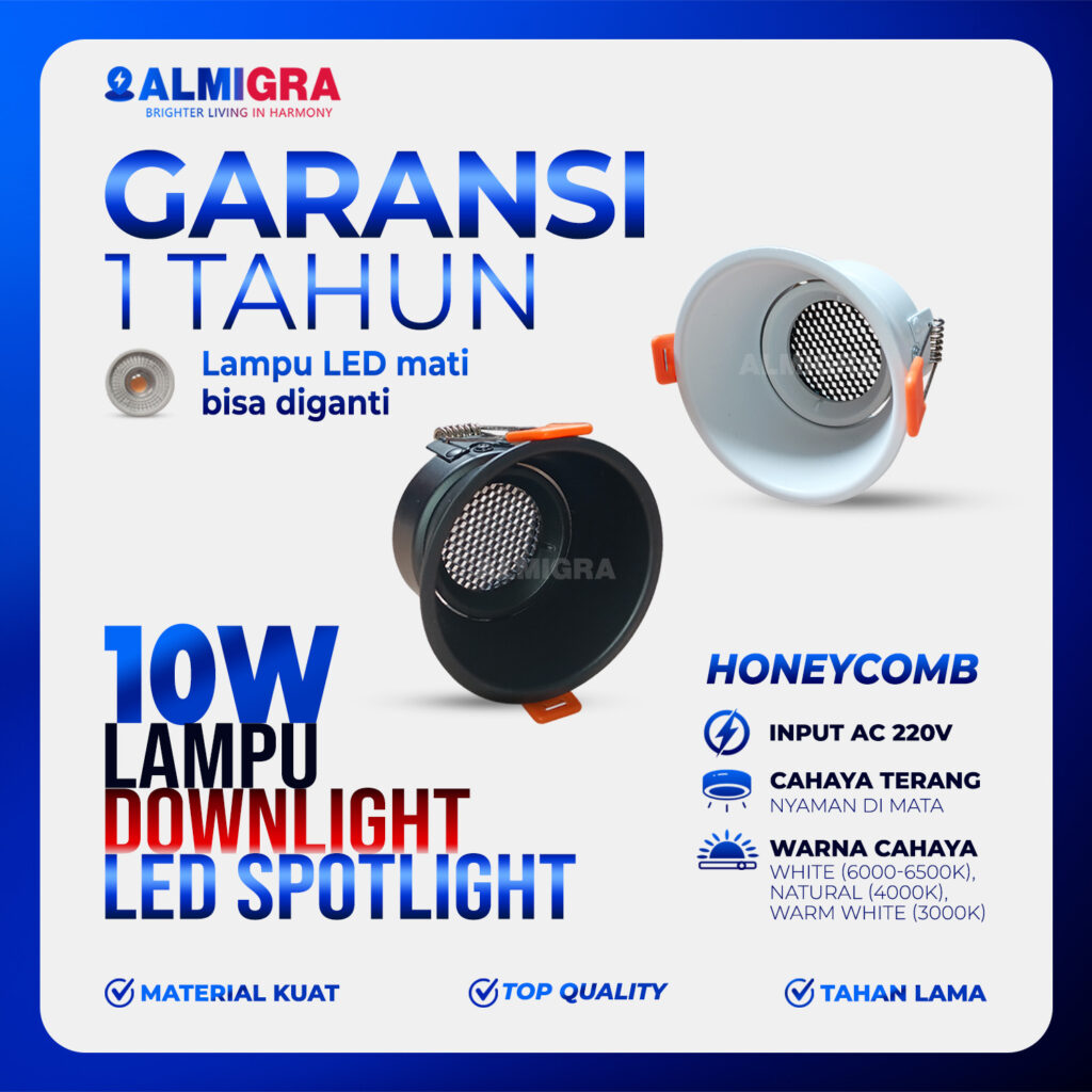 Spotlight Downlight LED 10W Honeycomb Lampu Sorot Plafon LED Mudah Diganti Garansi 1 TahunRp89.999KategoriDownlight TempelSpotlight TempelOrder