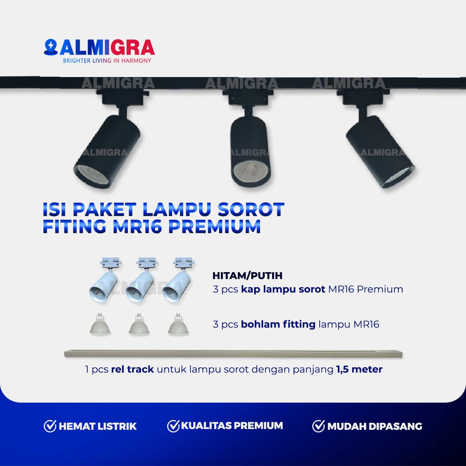 3 Set Lampu Sorot Rel 1.5M Track Light MR16 Premium Hitam Putih 7W – LED Spotlight Rumah, Toko, Cafe, Restoran, Kantor