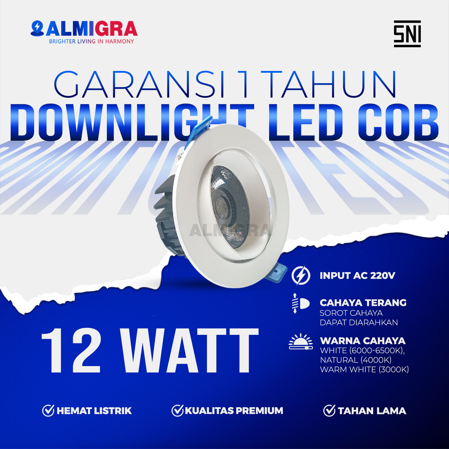 Downlight Spotlight LED 12W Lampu Sorot Plafon Warm White Natural Putih Garansi 1 Tahun