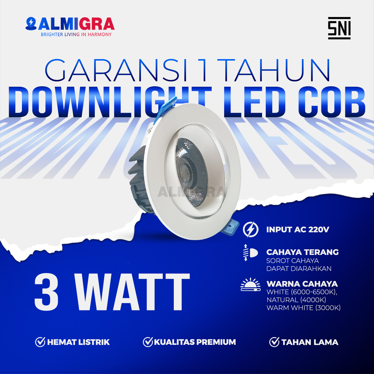Cahaya : Warm White 3000K / Natural 4000K / Putih 6000-6500K
