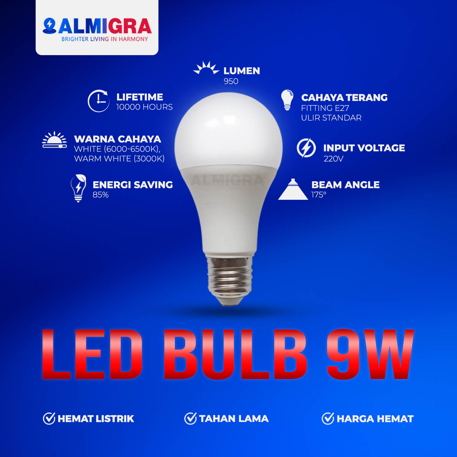 Lampu Bohlam LED 9 Watt Putih Daylight