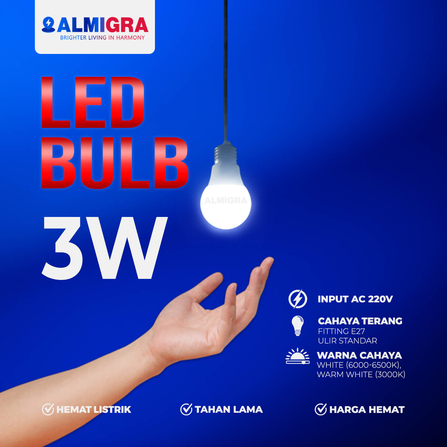 Lampu LED E27 3W – Bohlam Putih & Kuning Warm White – Terang, Hemat Listrik, SNI