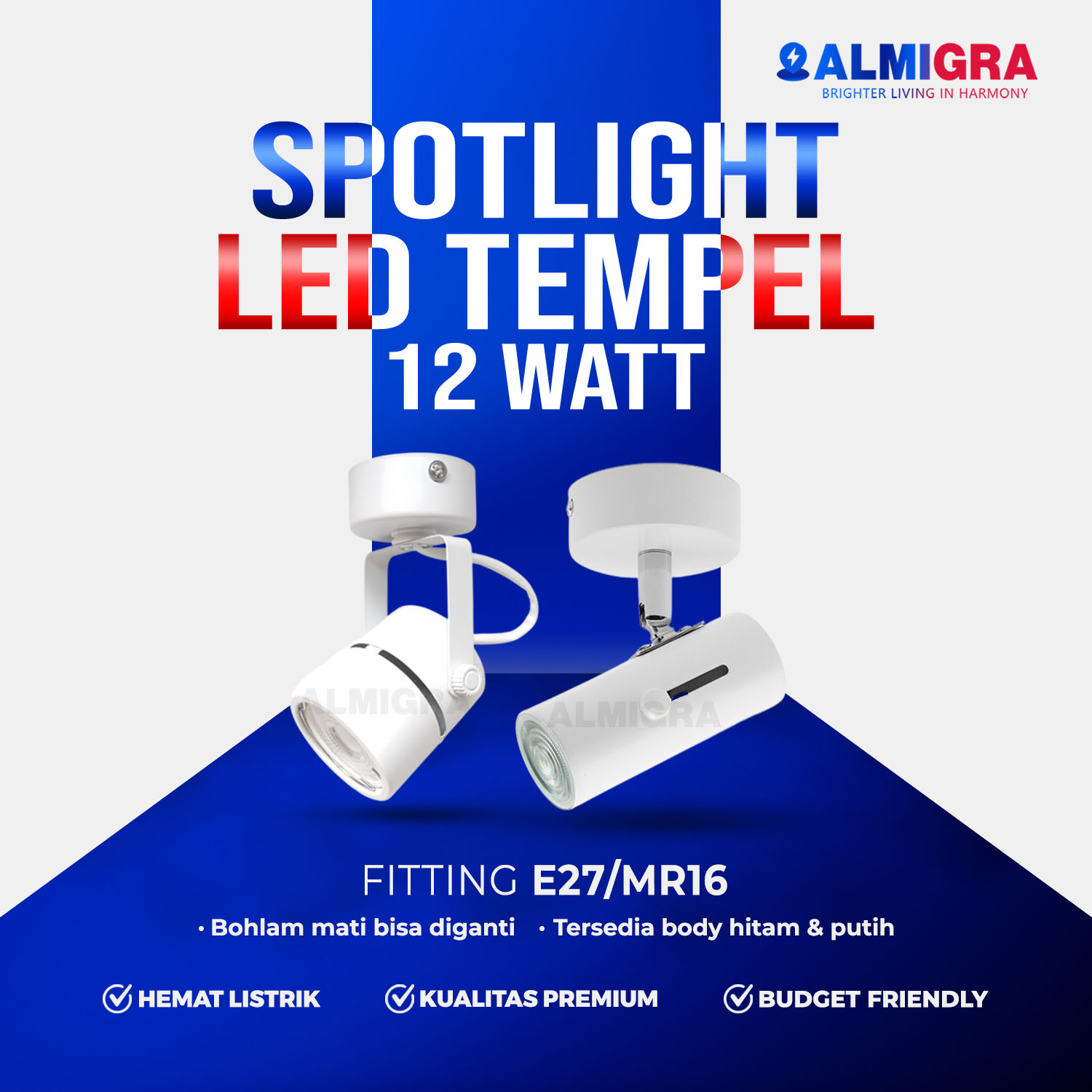 – Fitting : E27 Bohlam Ulir Standar / MR16 Tusuk 2 Pin