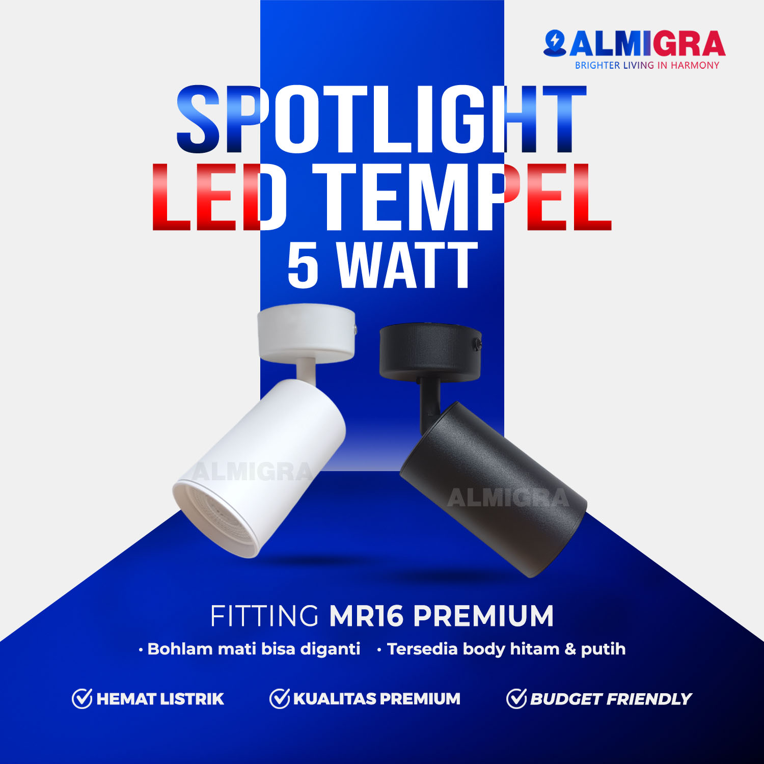 Lampu Sorot Tempel Plafon LED MR16 Premium 5W – Spotlight Bisa Ganti Bohlam Rumah Toko Cafe