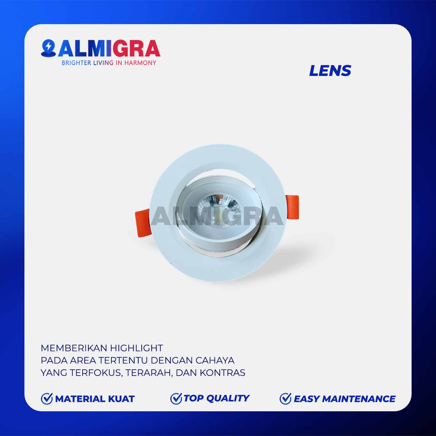 Varian Lens – Cocok digunakan di : dapur, meja kerja, ruang makan keluarga, cafe, restoran, toko toko / butik, hotel, galeri seni, showroom mobil / motor, ruang meeting kantor, mushola, dan area lainnya.