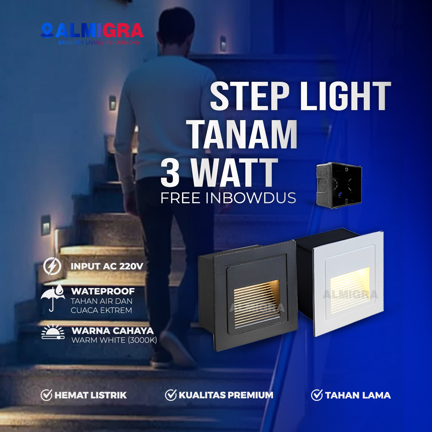 lampu led tangga, lampu dinding 3w, lampu waterproof outdoor, lampu anak tangga, lampu led warm white, lampu dekorasi tembok, lampu tembok outdoor, lampu kotak dinding, lampu taman terang