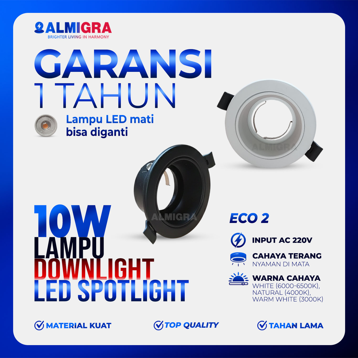 Spotlight Downlight LED 10W ECO 2 Lampu Sorot Plafon LED Mudah Diganti Garansi 1 Tahun